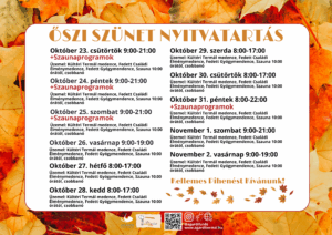 Fogadjátok szeretettel nyitvatartásunkat a hosszú hétvége és az őszi szünet ideje alatt.